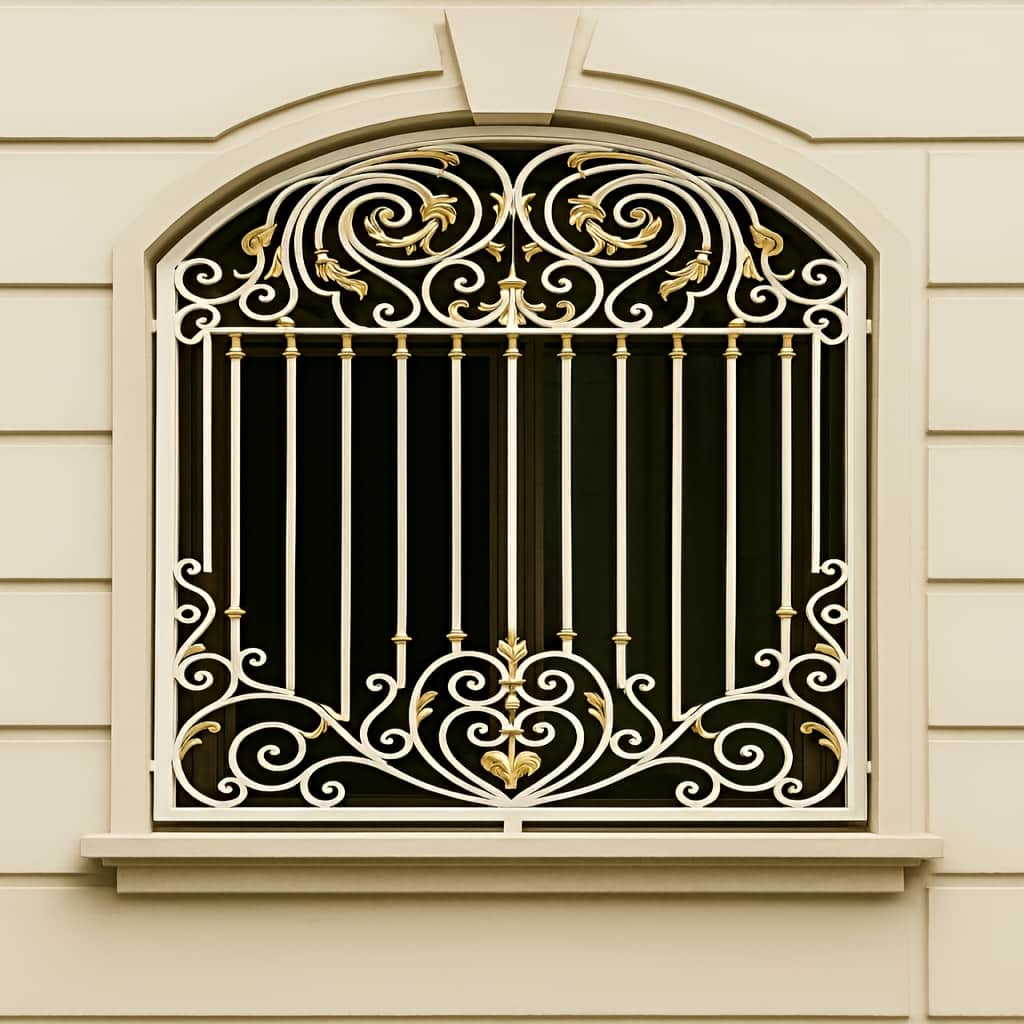 طراحی سلطنتی با تزئینات پیچکی و سرنیزه های طلایی برای نمای شیک و ایمن. |