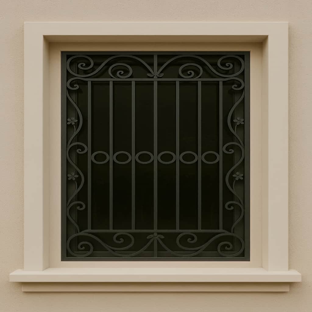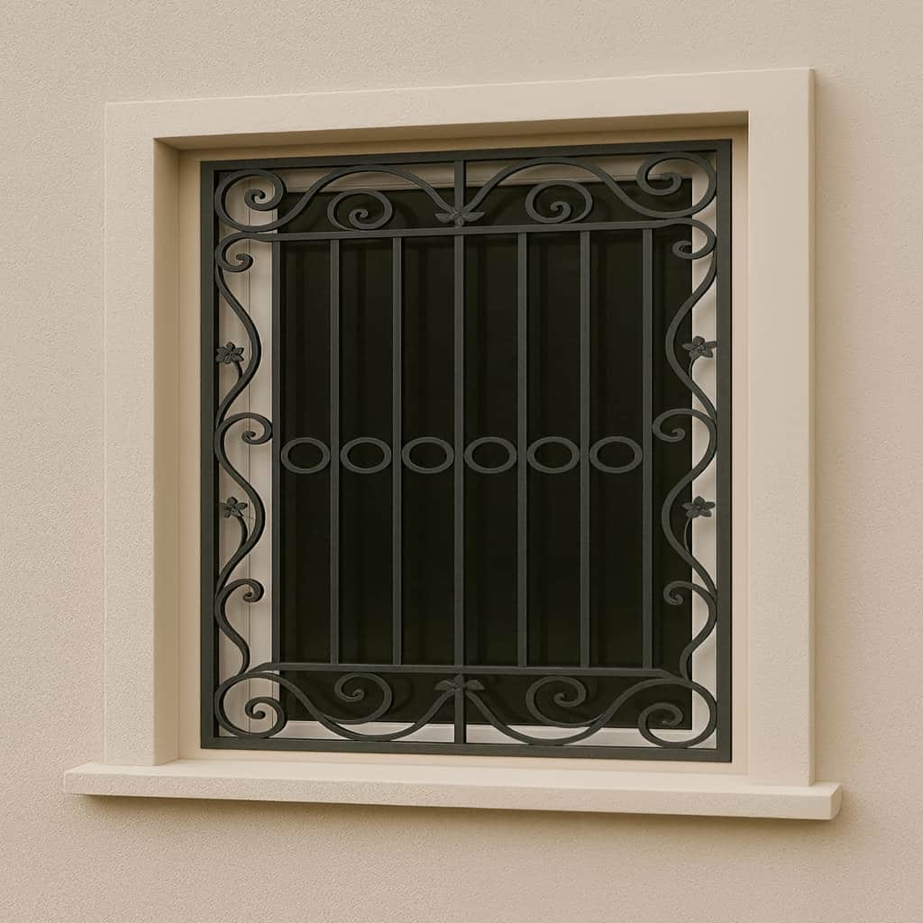 حفاظ پنجره مدل پیچک بهاری از قطعات مختلفی تشکیل شده است که هر کدام نقش خاص خود را ایفا می کنند. میله های عمودی این حفاظ از پروفیل 20×20 میلی متر ساخته شده و به دقت برای فرم دهی طرح پیچکی خم کاری می شوند. بخش میانی و پایین حفاظ با طراحی پیچک های فرفورژه و برگ های گیاهی تزئین شده است که به صورت دستی فرم داده می شوند. فریم اصلی از پروفیل های 30×30 یا 40×20 میلی متر ساخته شده که با جوش CO2 به هم متصل شده است. این طراحی استحکام بالایی ایجاد می کند و مانع از هرگونه آسیب به حفاظ می شود. در قسمت بالای حفاظ نیز از قوس های تزئینی و حلقه های مرکزی برای حفظ قرینگی استفاده شده است. رنگ آمیزی حفاظ با پوشش الکترواستاتیک کوره ای انجام شده که مقاومت بالایی در برابر شرایط جوی و رطوبت دارد. این حفاظ به راحتی می تواند بر روی پنجره های UPVC, آلومینیومی یا چوبی نصب شود. قیمت این مدل به ازای هر مترمربع بین 1/000/000 تا 1/500/000 تومان است و بسته به ابعاد و جزئیات ممکن است تغییر کند.