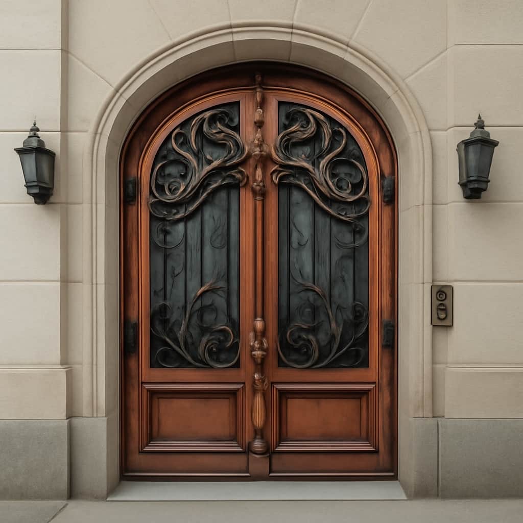 نمای طرح چوب درب فلزی آرت نوا با استفاده از تکنیک های ترموفیوژن یا پتینه صنعتی روی فلز اجرا می شود تا بدون استفاده از چوب طبیعی, حس بافت و رگه های چوب را ایجاد کند. این روش باعث می شود درب در برابر رطوبت, حشرات و تاب برداشتن رفتاری بسیار پایدارتر از درب چوبی واقعی داشته باشد و در عین حال ظاهری گرم و صمیمی به ورودی ساختمان بدهد. |