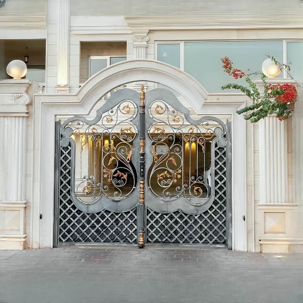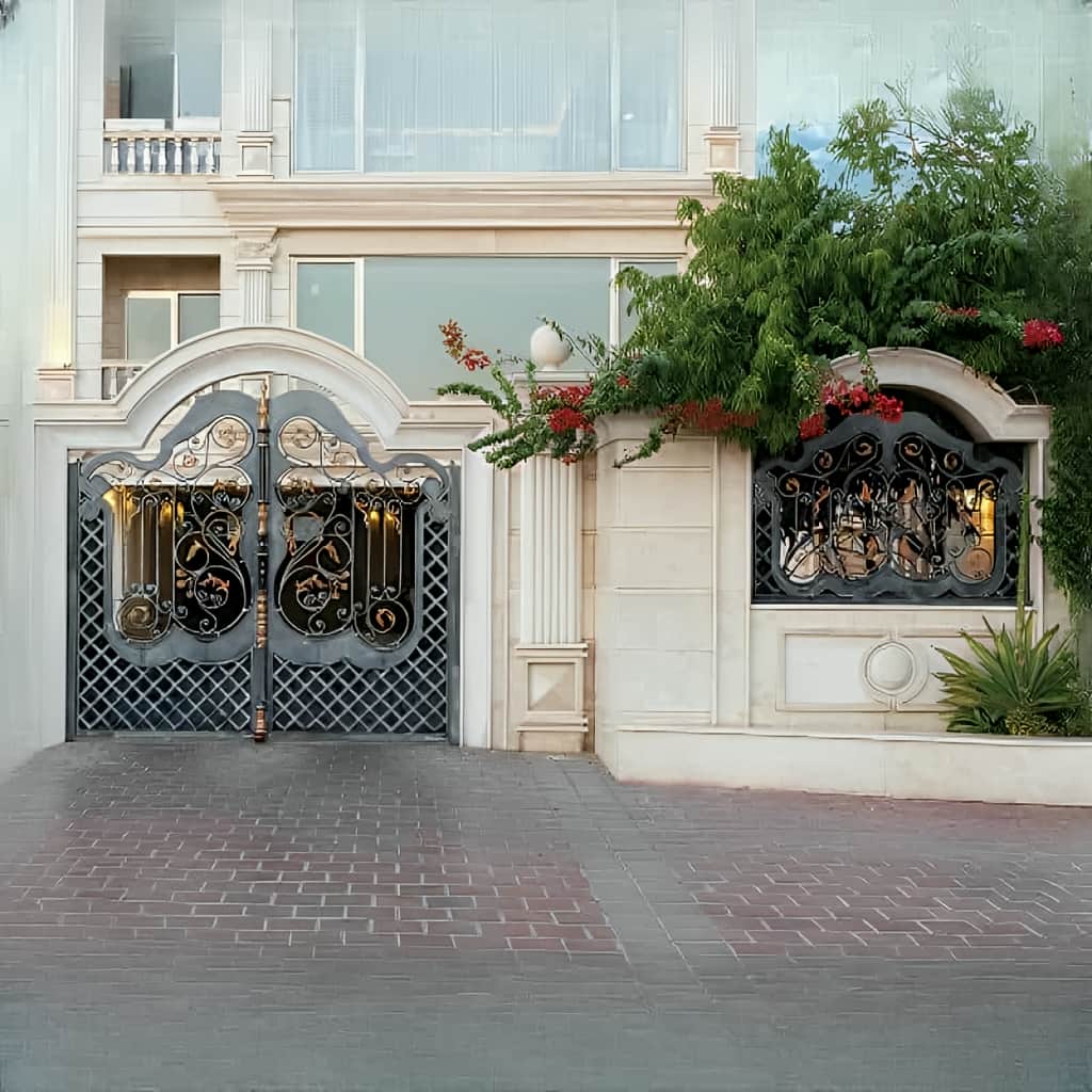 درب فلزی ارغوان با طرح فرفورژه کلاسیک برای نماهایی طراحی شده که در آن ها فرم های قوسی, ستون های الهام گرفته از معماری سنتی و جزئیات سنگ کاری ریز نقش حضور دارد و درب باید در همان زبان بصری ادامه دهنده این سبک باشد. در این مدل, گل ها و شاخه های فرفورژه با الهام از موتیف های گیاهی و خطوط منحنی در قاب ها و طاق های بالای لنگه ها چیده می شوند تا ترکیبی متعادل میان خلوتی و شلوغی ایجاد گردد, به شکلی که هم نور و هوا عبور کند و هم حس استحکام و حریم خصوصی حفظ شود. فرآیند اجرا از طراحی دستی یا نرم افزاری شروع می شود, سپس قطعات فرفورژه آماده شده روی قاب خام قرار گرفته و پس از تایید چیدمان, جوشکاری نهایی انجام می شود. در پروژه های واقعی, این مدل به خصوص در کنار نمای سنگ تراورتن, رومی یا نماهای ترکیبی سنگ و آجر جلوه بسیار چشمگیری دارد. نکته مهم در اجرای صحیح, رعایت تناسب ابعاد گل ها با ارتفاع درب است, زیرا استفاده از قطعات خیلی ریز در درب های بلند باعث شلوغی آزاردهنده می شود و برعکس, انتخاب گل های خیلی درشت برای دهانه های کوچک, ظرافت کار را از بین می برد. با انتخاب ترکیب درست, درب فلزی ارغوان با طرح فرفورژه کلاسیک به امضای بصری پروژه تبدیل شده و از فاصله دور نیز نگاه ها را به سمت ورودی ساختمان هدایت می کند.