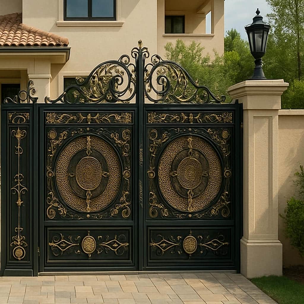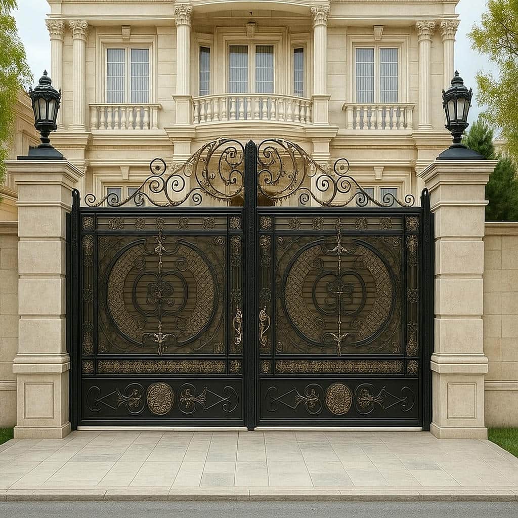 درب فلزی ارکیده ورودی ویلا و باغ به عنوان یک عنصر اصلی در طراحی محوطه عمل می کند و نقش آن تنها محدود به بستن دهانه حیاط نیست, بلکه شخصیت کلی پروژه را از لحظه ورود تعریف می کند. در ویلاهای باغی, ترکیب این درب با محوطه سازی سبز, مسیرهای سنگفرش و دیوارهای سنگی باعث می شود ورودی ملک مانند یک قاب زیبا برای فضای داخلی عمل کند و حس دعوت کنندگی و در عین حال حریم خصوصی را منتقل نماید. در این کاربری, توجه به تناسب ارتفاع درب با دیوارها, انتخاب رنگ هماهنگ با نما و حتی نوع دستگیره و قفل اهمیت زیادی دارد زیرا جزئیات کوچک هستند که در مجموع حس لوکس بودن را تقویت می کنند. برای مثال, استفاده از رنگ تیره با افکت پتینه طلایی روی گل ها در کنار نمای روشن ویلا می تواند تضادی چشمگیر و جذاب ایجاد کند. خطای رایج این است که درب بدون در نظر گرفتن شیب زمین یا رمپ خودرو طراحی شود و بعد از نصب, باز و بسته شدن آن با مشکل برخورد کند, به همین دلیل در مراحل اولیه طراحی, شیب محوطه, محل توقف خودرو و شعاع باز شدن لنگه ها به دقت بررسی می شود تا درب فلزی ارکیده علاوه بر زیبایی, از نظر کاربری نیز بی نقص عمل کند.