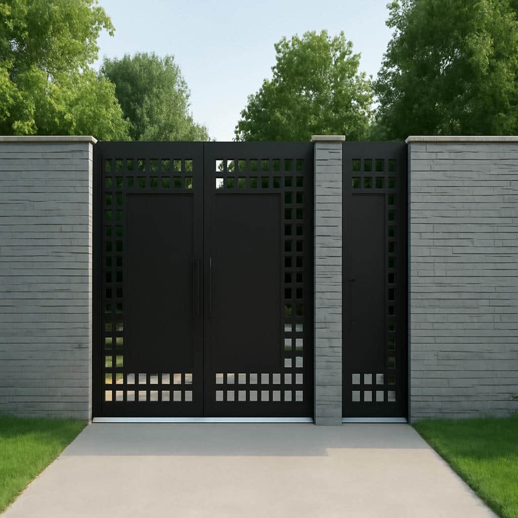 درب مدرن کوآدرا با طراحی مینیمال ویلایی پاسخی حرفه ای برای کسانی است که به دنبال ورودی ساده, یکدست و در عین حال شخصیت دار برای ویلای خود هستند. در این سبک, خبری از گل نرده های شلوغ یا تزئینات پیچیده نیست و به جای آن, نظم مربع های تکرارشونده و سطح صاف ورق فلزی, نما را منظم تر و آرام تر نشان می دهد. در مرحله طراحی, ارتفاع و عرض لنگه ها با مقیاس نما و عرض رمپ پارکینگ هماهنگ می شود تا درب نه خیلی باریک و بلند و نه کوتاه و فشرده به نظر برسد. یک نمونه رایج, ویلاهایی هستند که در آنها سنگ روشن نما با خطوط افقی قوی استفاده شده و درب کوآدرا به رنگ تیره مات, کنتراست جذابی ایجاد می کند. اگر در زمان طراحی به محل دستگیره, ارتفاع خط دید و هماهنگی با درب نفررو توجه نشود, نتیجه نهایی ممکن است ناهماهنگ به چشم بیاید؛ به همین دلیل در کارخانه قبل از ساخت, طرح پیشنهادی روی نما بررسی و اصلاح می شود تا خروجی, در عین سادگی, کاملا متناسب و چشم نواز باشد.